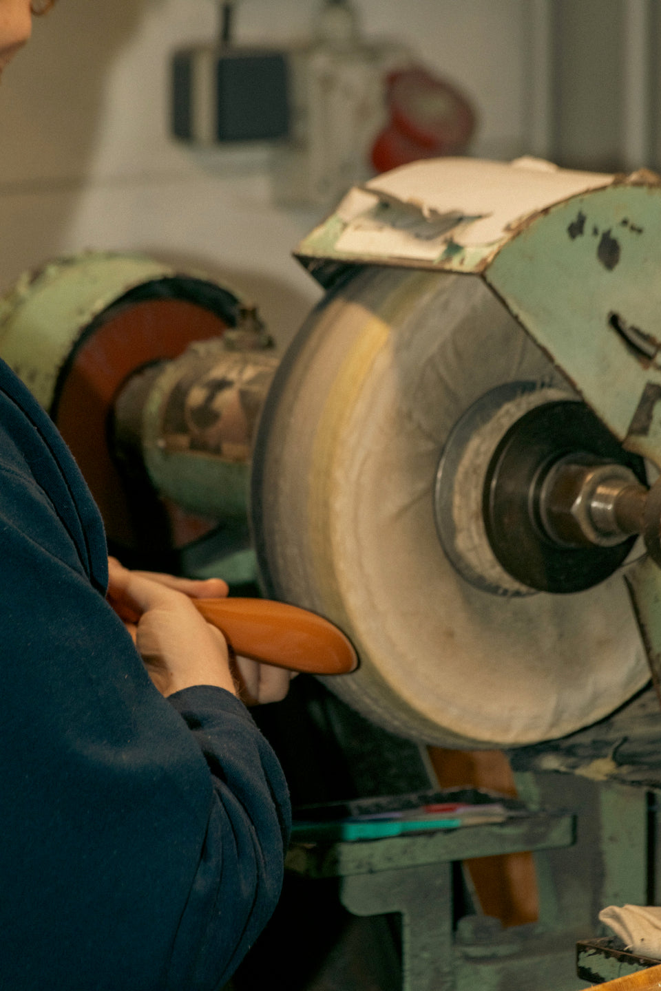 Alexis, ein Industriehandwerker, der aus einer Reihe von lokalen Unternehmern hervorgegangen ist, bewahrt jedoch noch immer das Know-how des Celluloseacetats in Frankreich. Ihm ist es zu verdanken, dass wir dieses Material erneut verarbeiten konnten, um den Griff unserer Haarbürste herzustellen. Und so die Grundlagen der edlen und qualitativ hochwertigen französischen Bürstenmacherei wiederfinden.