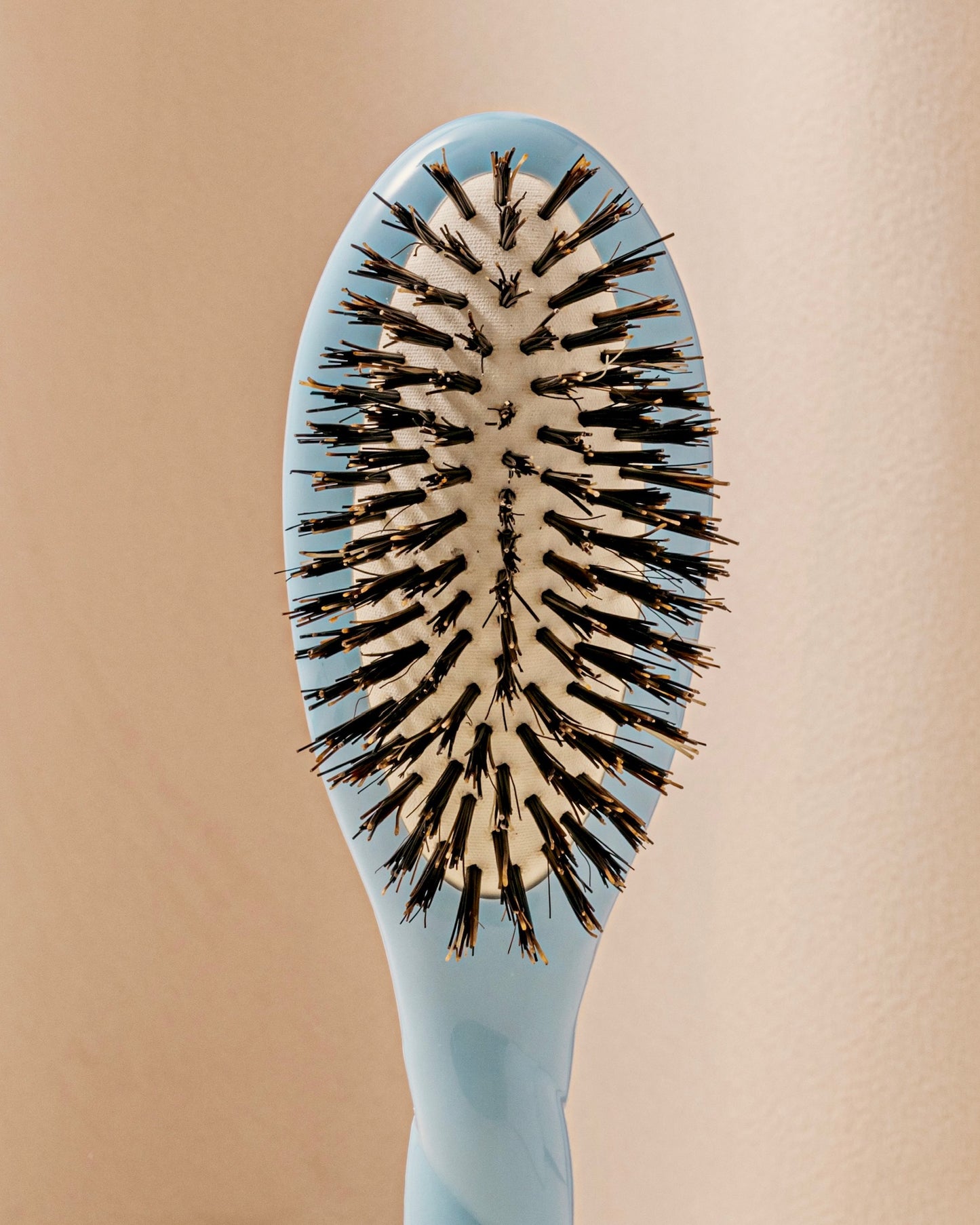 If you are looking for a remedy for fine hair that lacks density, the boar bristle 'The Small Hairbrush N.01' is the ideal solution. This detangling brush made from boar bristles will help your hair to regain vitality, brightness and volume.