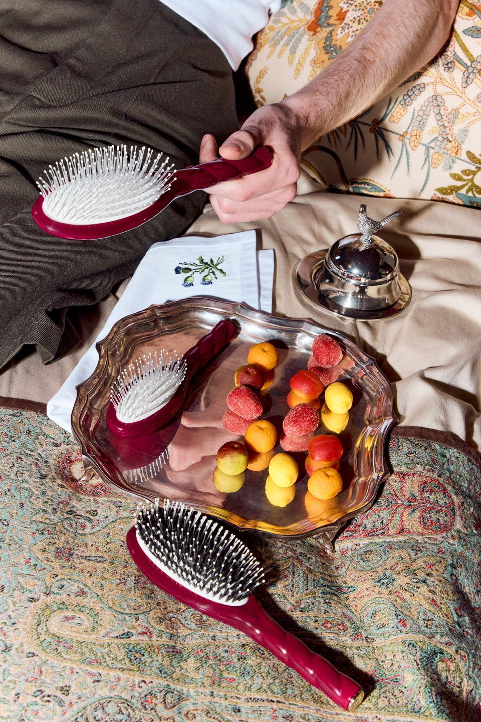 First and foremost, by doing it often enough—at least three times a week and twice a day. Make sure, during each brushing session, to start at the temples and work your way towards the back of the head, then restart from the top of the head and move towards the nape. And all of this with your head down to properly distribute the natural oils!