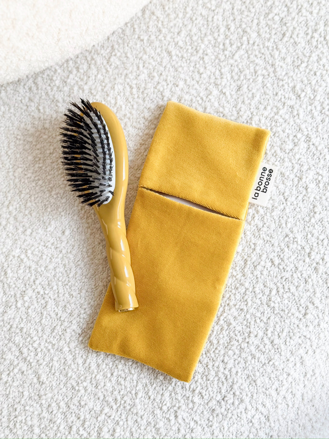 Perfectly sized for your small brush, this yellow pouch ensures its properties are well-preserved. Both elegant and functional, this velvet and satin case stands out for its durability. Whether in your handbag or suitcase, take your small hairbrush with you!